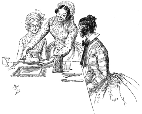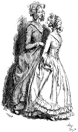 I received two Cranford letters on one auspicious October morning. Both Miss Pole and Miss Matty wrote to ask me to come over and meet the Gordons, who had returned to England alive and well with their two children, now almost grown up. Dear Jessie Brown had kept her old kind nature, although she had changed her name and station; and she wrote to say that she and Major Gordon expected to be in Cranford on the fourteenth, and she hoped and begged to be remembered to Mrs. Jamieson (named first, as became her honourable station), Miss Pole, and Miss Matty—could she ever 292forget their kindness to her poor father and sister?—Mrs. Forrester, Mr. Hoggins (and here again came in an allusion to kindness shown to the dead long ago), his new wife, who as such must allow Mrs. Gordon to desire to make her acquaintance, and who was, moreover, an old Scotch friend of her husband’s. In short, every one was named, from the rector—who had been appointed to Cranford in the interim between Captain Brown’s death and Miss Jessie’s marriage, and was now associated with the latter event—down to Miss Betsy Barker. All were asked to the luncheon; all except Mrs. Fitz-Adam, who had come to live in Cranford since Miss Jessie Brown’s days, and whom I found rather moping on account of the omission. People wondered at Miss Betty Barker’s being included in the honourable list; but, then, as Miss Pole said, we must remember the disregard of the genteel proprieties of life in which the poor captain had educated his girls, and for his sake we swallowed our pride. Indeed, Mrs. Jamieson rather took it as a compliment, as putting Miss Betty (formerly her maid) on a level with ‘those Hogginses.’
