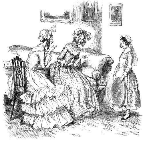 There has been some talk of establishing Martha and Jem in another house, but Miss Matty would not hear of this. Indeed, I never saw her so much roused as when Miss Pole had assumed it to be the most desirable arrangement. As long as Martha would remain with Miss Matty, Miss Matty was only too thankful to have her about her; yes, and Jem too, who was a very pleasant man to have in the house, for she never saw him from week’s end to week’s end. And as for the probable children, if they would all 291turn out such little darlings as her god-daughter, Matilda, she should not mind the number, if Martha didn’t. Besides, the next was to be called Deborah—a point which Miss Matty had reluctantly yielded to Martha’s stubborn determination that her first-born was to be Matilda. So Miss Pole had to lower her colours, and even her voice, as she said to me that, as Mr. and Mrs. Hearn were still to go on living in the same house with Miss Matty, we had certainly done a wise thing in hiring Martha’s niece as an auxiliary.