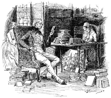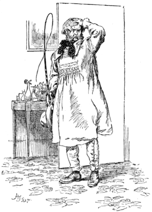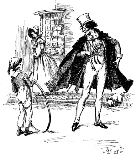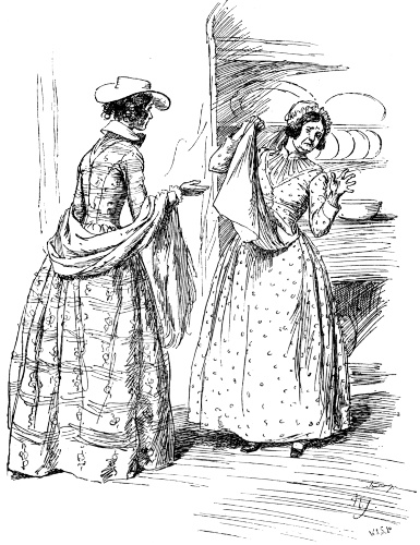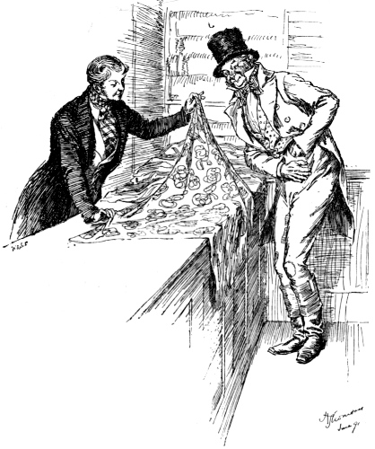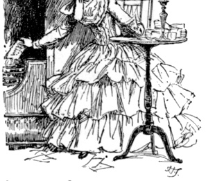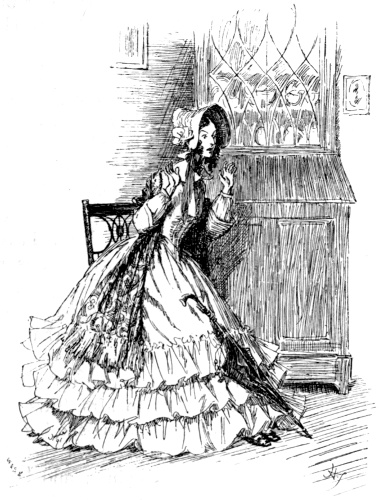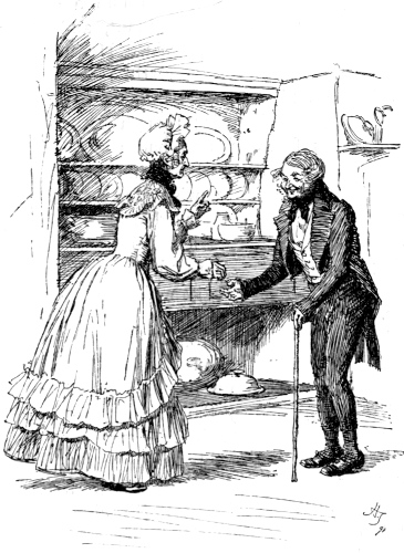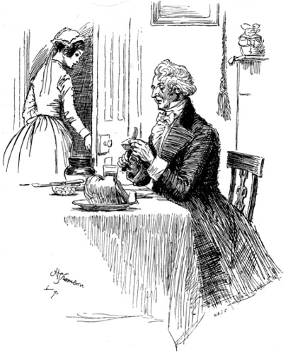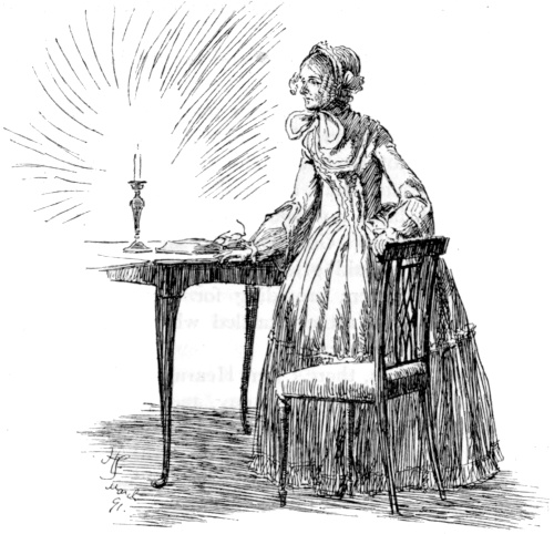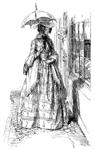 Martha was beginning to go about again, and I had already fixed a limit, not very far distant, to my visit, when one afternoon, as I was sitting in the shop-parlour with Miss Matty—I remember the weather was colder now than it had been in May, three weeks before, and we had a fire and kept the door fully closed—we saw a gentleman go slowly past the window, and then stand 279opposite to the door, as if looking out for the name which we had so carefully hidden. He took out a double eye-glass and peered about for some time before he could discover it. Then he came in. And, all on a sudden, it flashed across me that it was the Aga himself! For his clothes had an out-of-the-way foreign cut about them, and his face was deep brown, as if tanned and re-tanned by the sun. His complexion contrasted oddly with his plentiful snow-white hair, his eyes were dark and piercing, and he had an odd way of contracting them and puckering up his cheeks into innumerable wrinkles when he looked earnestly at objects. He did so to Miss Matty when he first came in. His glance had first caught and lingered a little upon me, but then turned, with the peculiar searching look I have described, to Miss Matty. She was a little fluttered and nervous, but no more so than she always was when any man came into her shop. She thought that he would probably have a note, or a sovereign at least, for which she would have to give change, which was an operation she very much disliked to perform. But the present customer stood opposite to her, without asking for anything, only looking fixedly at her as he drummed upon the table with his fingers, just for all the world as Miss Jenkyns used to do. Miss Matty was on the point of asking him what he wanted (as she told me afterwards), when he turned sharp to me: ‘Is your name Mary Smith?’