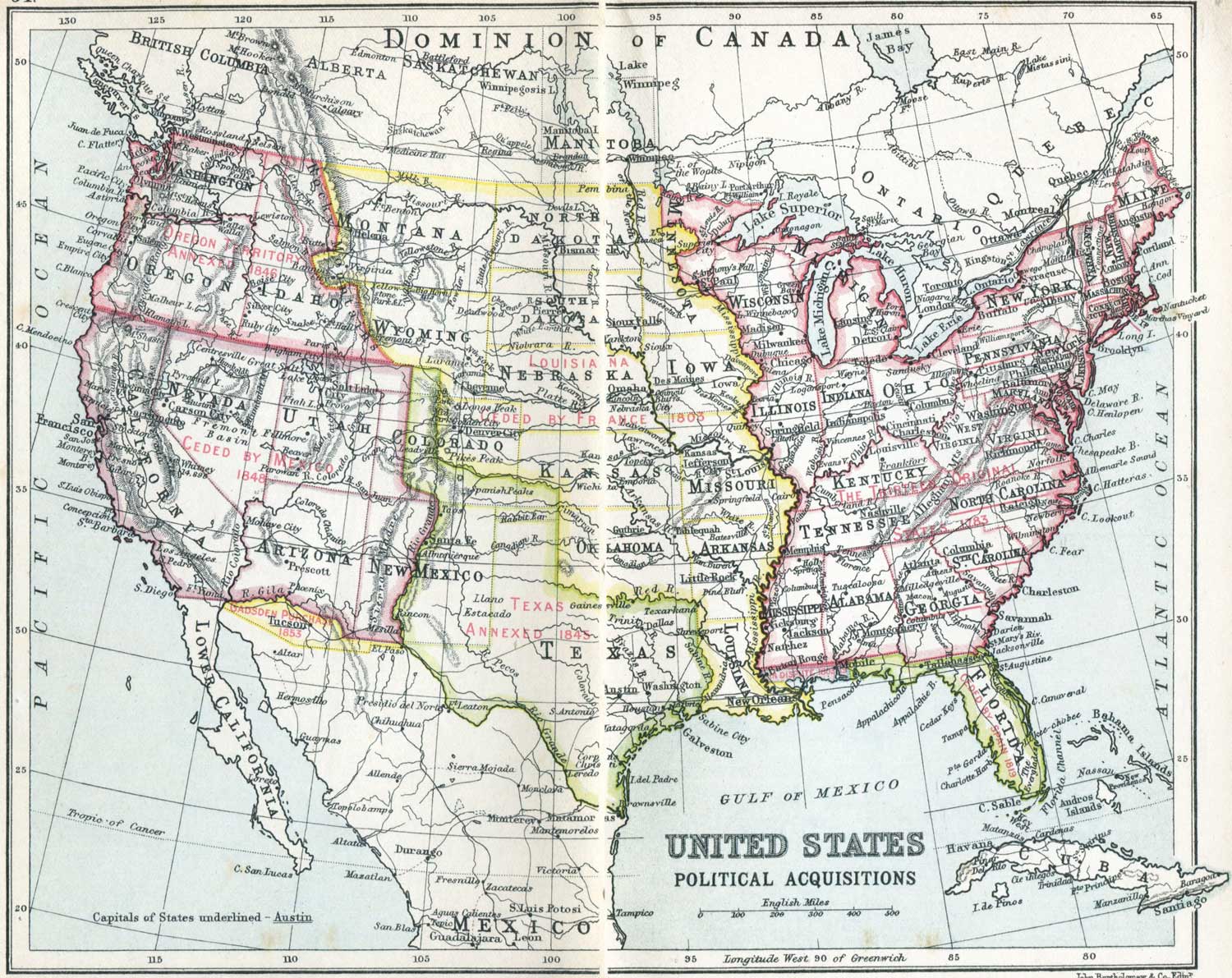When General Hamilton spoke in the Federalist over a century ago of "an empire, in many respects the most interesting in the world," meaning the United States of America, he did not, he could not, foresee the vast growth of his country and its northern and southern neighbours which this book portrays. The volume is the third in a series of small atlases, meant to cover in turn the whole globe, and to do it in a way to knit up geographical and historical knowledge with the facts of commerce and the literary record of each land or region. One chief purpose of these maps is to trace clearly the development of the United States, beginning with "the most remarquable parts" of the New England of the Pilgrim Fathers, described by Captain John Smith in 1614, and not forgetting the territories of the old American-Indian nations. Some inkling too is given in facsimile of the early charts, views, and maps by the explorers and cartographers who made a survey of the first settlements. For example, we have an old map of Guiana invaluable as a Sir Walter Raleigh record, giving the mouths of the Oronoke, or Orinoco, where his men tugged against the stream, and stretching southward to the Amazon itself, and we get from the map of Peru at the period of the Conquest a clear idea of the country in the time of Pizarro.
