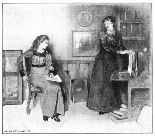 Miss Colbourne walked across to the corner of the room that held her especial treasures. There stood a bookshelf brought from Bellagio by a friend, carved out of the olive wood with inlaid work. On the bottom shelf were arranged her Italian books, one or two rare editions among them. Above was a fine likeness of Dante and a plaster medallion of Savonarola, with some trifling objects picked up by friends on their wanderings. One of the most precious of these treasures was the dainty portfolio which she now brought forward and laid on the table.