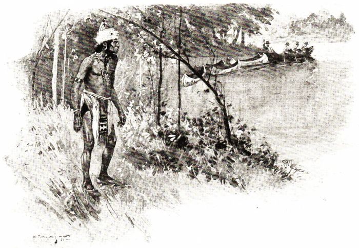 "Don't shoot at him," said the old Pilot to his men. "I have taken from him all of his ten canoes; let him go."