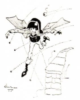 After we'd seen the tomb of Napoleon we went up the Eiffel Tower. It's a funny-looking thing, and I'd hate to have it fall while I was on top of it, because it's a thousand feet high, which is no fun if you're tumbling. Pop says it wasn't built according to rules. The rule is that there's plenty of room at the top, but with the Eiffel Tower there's hardly any; but, my, what a view you get! It was awful funny to look down on the city of Paris from that fearful height. The people looked like lady-bugs crawling along[Pg 648] the sidewalk, and the one-horse fakirs looked for all the world like beetles, and it's given me a very different idea about birds from what I used to have. I used to wonder why birds were such fraid-cats, but I know now why it is. It must scare a bird like everything to be soring way up there in the sky and think he sees a nice fat luscious beetle for breakfast crawling along the street, and then pounce down on it and find out it's a horse and wagon worth fifty cents an hour. It really takes an eagle to stand a surprise like that. Pop bought some souvenirs on top of the tower, and I'll bring you home one of 'em when I come. It's a brass medal with a picture of the tower on it, and it cost two dollars. Pop says that's two cents for the medal and the rest for souvenir. When I asked him to buy it he said isn't that rather expensive? Not for me if you buy it, I said, and that made a man laugh, and he said to Pop that's a bright boy of yours, and Pop felt so proud he bought two of 'em. There was an artist on the first floor of the tower that drew your picture while you waited, for five francs. Pop had him make one of me, and it's fine. Aunt Sarah says there isn't much art in it, but Pop thinks differently. He says it's really a wonderful picture, it's so like somebody else considering I sat for it.