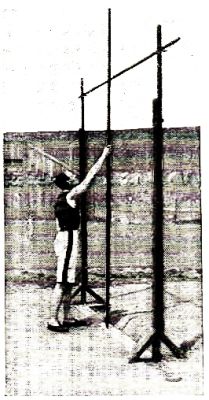 Coming now to the swing proper, it is a safe rule not to attempt too much at first. If you watch a professional making a full drive, you will see his body turn and his left heel come well off the ground, while the club will appear to wind completely around him. But if you attempt to imitate him you will soon find yourself in difficulty. Instead of turning your body, you will be inclined to sway it over the right leg; rising on the left toe will throw you off your balance, and you will only be able to get a long swing back by bending your wrists. Now all these things are wrong, and tend to inaccuracy and feebleness. The thing for you to do is to take a short or half-swing back, and trust to practice to lengthen it. It is very important that your up swing should be slow, so that the arms may go freely out from the body. "Slow back," as it is called, is a cardinal principle. Otherwise you are sure to make the swing too straight up and down. Let the swing finish itself out, as the fly fisherman does when casting, and let the return be swift and even. Keep your shoulders loose and your body firm, and as your swing lengthens your body will turn to accommodate it. But it must turn on its own axis, as does a rudder-post, and not sway from side to side after the fashion of a boom. And all the time you must have your eyes fixed upon the ball or you will never hit it cleanly.