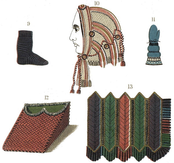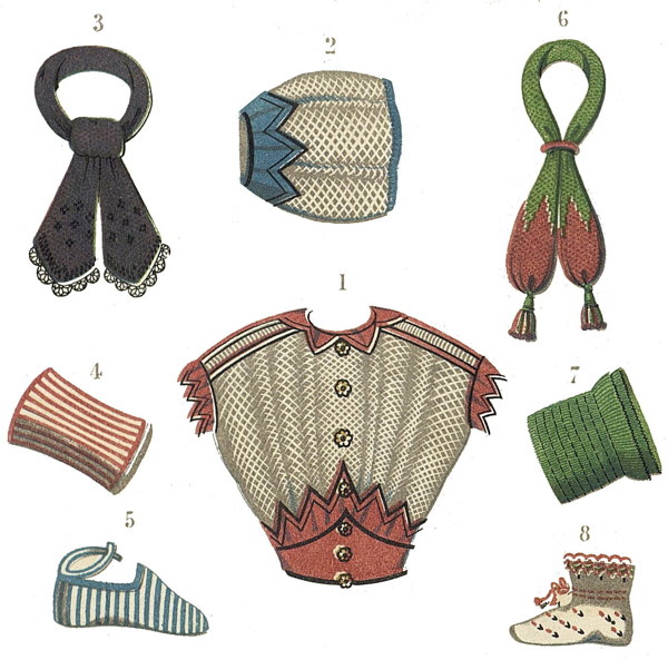 Materials—White, Brown, Violet, or Scarlet Andalusian Wool; 5 knitting needles, No. 20.