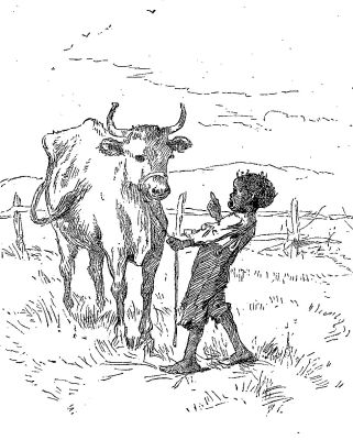 But in spite of his ill-temper, of which hunters are never tired of speaking, the rhinoceros certainly has a love of fun. An English hunter in South Africa had gone to bed in his travelling wagon one night, leaving his native servants feasting around the camp fire. Suddenly he heard a terrible uproar, and looking out, discovered that a rhinoceros was having a little fun in the camp. The air seemed to be full of tin pans, and natives, and blankets, and fire-wood, which the rhinoceros was tossing, and the natives, whenever they could get breath enough to express their views of the situation, were calling for help. The hunter did not interfere with the animal's amusement, and presently the rhinoceros buried his horn in a red blanket, which covered his eyes and blinded him. In this condition the beast started to run away, and as he vanished, the hunter could hear him stumbling and knocking his head against all the trees and nearly all the rocks in that particular part of Africa.