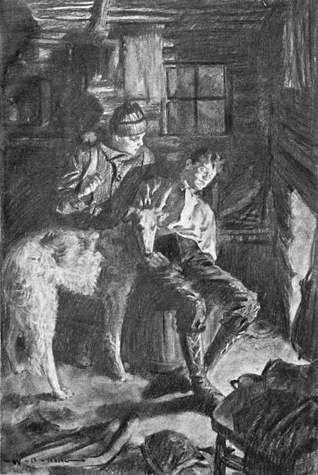 It was bright morning when he opened his eyes and started up in dismay at having slept so long. Laughing Mary, sitting beside Jake’s bunk, looked up at him and gave him a smile, a smile of relief and gratitude this time, not the queer empty one that had given her the name. There seemed to be little change in Jake, his pulse was a trifle weaker, perhaps, and his eyes stayed shut for longer and longer at a time. Hugh went into the storeroom to see what food would be best for him; he looked carefully through every box and canister to make certain what was there. So occupied was he that he did not hear the swishing of snowshoes over the frozen slopes outside nor even heed a quiet knock at the door. It was not until some one came into the room and laid a hand upon his arm that he turned quickly to see Oscar Dansk.