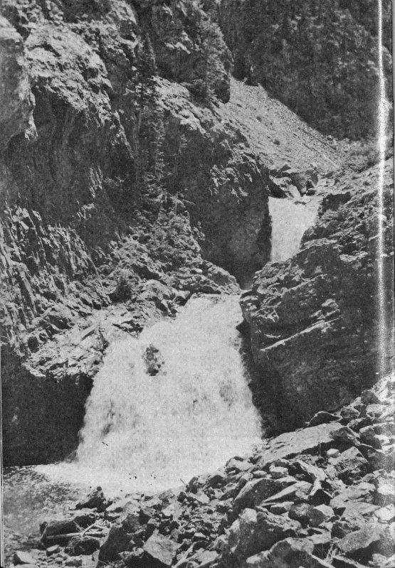 THE DEVIL’S PUNCH BOWLS—half way between Schofield and Crystal City. The road is to the right, high above these falls. —Photo courtesy Colin L. Moore, Gunnison, Colo.