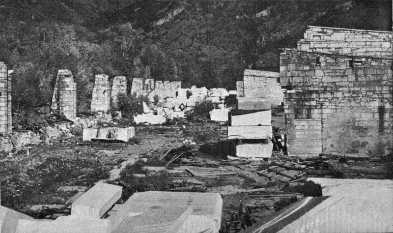 PICTURE ON COVER—is part of one of the two remaining fire walls still left standing at the Old Marble Mill Site in Marble, Colo. Sheep Mountain can be seen through the door way and White House Mountain at right. Jeep tours can be taken to the tops of these peaks for very extensive sight-seeing trips. —Photo by Will L. Francis