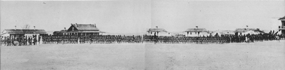 Company C, Mounted Rifles, consisting of 2 officers and 60 men, arrived at the post on July 26, and on August 12 the 2 officers and 53 men of Company G, Sixth Infantry, completed the garrison and joined in the work of preparing additional quarters.