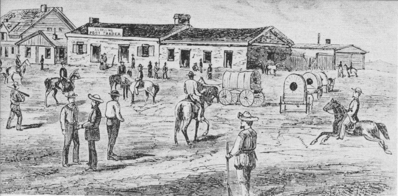 In 1858, the discovery of gold at Cherry Creek, 200 miles south of Fort Laramie, precipitated the Colorado gold rush. That winter Fort Laramie was the nearest link between the gold miners clustered about the site of Denver, Colo., and the outside world. An informal mail express to the fort was organized and carried by old trappers.