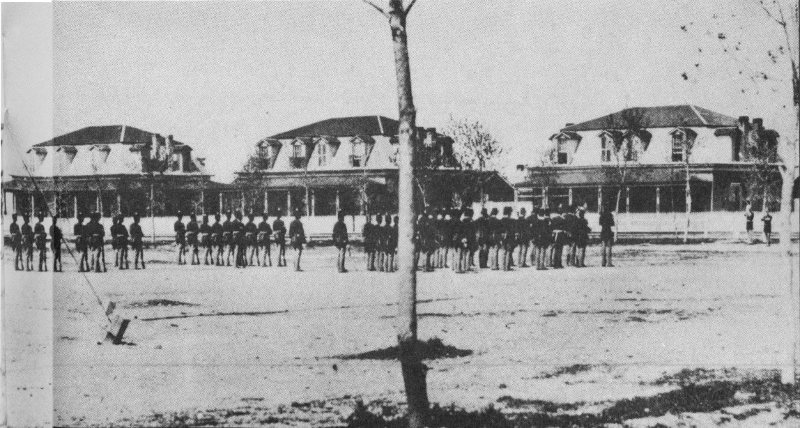 The post commander reported further progress in new construction during 1850. The stonewalled magazine was probably completed that year, “Old Bedlam” neared completion, and a two-storied barracks was begun. Lured by gold, however, troops as well as civilian artisans deserted the post to such an extent that Mexican labor was imported for building and experimental farming.