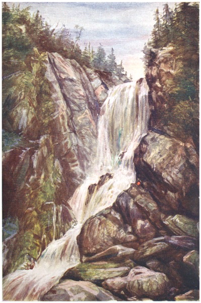 Angling in the lakes for trout is also a delightful sport. Within ten miles of St. John’s there are large expanses of water that are alive with Loch Leven and Californian rainbow trout. On a charming June morning you decide to leave the city and spend the day with rod and line upon the lakes in your little canvas boat. You see that your conveyance contains a kettle, a teapot, and a good supply of food, for when you reach the side of the lake you will find it almost impossible to satisfy your hunger. Away you start at a rattling pace, and in a short73 time you find yourself in the heart of primitive scenery. What does it matter if the trout refuse to bite? The air has given you a new lease of life, the blue sky has got into your soul, the odour of the avenues of spruce-trees makes you smack your lips, and at every turn in the road you are greeted by some stream that babbles through a cluster of ferns and flowers. Then your horse creeps panting up a steep hill, whose summit introduces you to a glimpse of the great Atlantic, or a quaint little fishing village sleeping in a cuplike hollow near the seashore. At last you reach the lake, unharness the horse, prepare your rod and line, fix your boat on the water, and lure your fish to the surface of the lake by the aid of your “Silver Doctor,” for that is the fly that seems best to tempt the palate of the “rainbow,” and “Loch Leven.” When you have whipped the water for a few hours, you suddenly get a telegraphic message from your stomach that it is time to dine. You pull up to the edge of the water, make an extempore fire-grate out of the boulders, snap off some dry spruce-twigs, and in a short time the mouth of your kettle is belching forth boiling water. The only sounds to be heard are the crackling of the burning twigs and the song of your kettle. One member of the party spreads the cloth upon the velvet moss, one makes the tea, one opens the tinned peaches, and another goes into the wood with74 a dish to gather wild raspberries, to add lusciousness to the pot of cream.