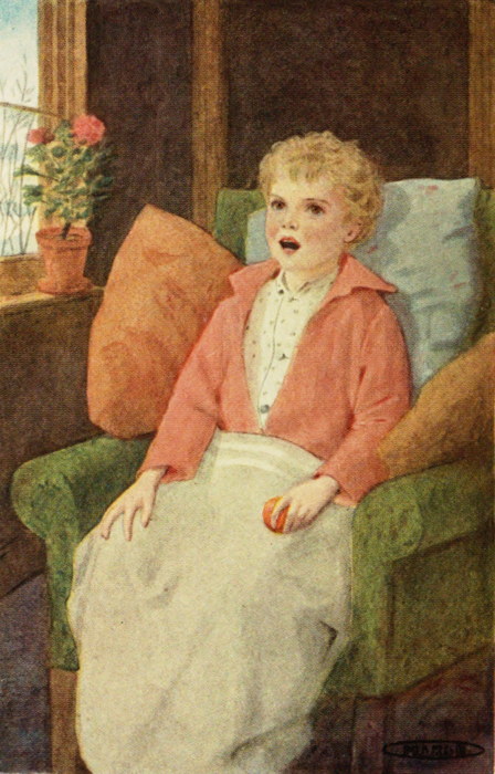 “Isn’t he a darling!” breathed the little occupant of the pillowed chair, when the battered cage was placed beside him. He threw one arm around the small prison, and leaned lovingly over it.