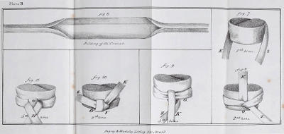 Instances have, however, occurred in which these immense Cravats have saved the lives of the wearers in battle. One fact, as related by Dr. Pizis, may be worthy of record. “I was laughing” (says he) “at General Lepale, on account of his enormous Cravat. At the moment of entering[15] into action his regiment charged, and after dispersing the enemy’s cavalry returned to the bivouac. I was informed that the General had been struck by a pistol shot in the throat. I immediately hastened to his assistance, and was shewn a bullet, which was stopped in its career by the very Cravat I had just been ridiculing.—Two officers and several privates had received sabre cuts on the Cravat, and escaped without injury; so that I was obliged to confess that these immense bandages were not always useless.”