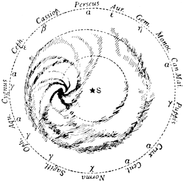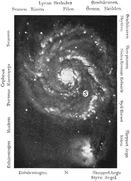 | Primitive conceptions of the Milky Way. Anaxagoras and Demokritos. Ptolemaios. Galilei. Cosmogenic speculations. Wm. Herschel’s statistical researches regarding the distribution of the stars. The Milky Way as the foundation of the stellar system. The Milky Way as a nebula. Classification according to age of thex stars, their distribution and velocity. Motion in the Orion nebula. The planetary nebulæ. Kapteyn’s “star-drifts.” The origin of the Milky Way. Comparison between the Milky Way and a spiral nebula in “The Dogs of Orion.” A few details from the Milky Way. The infinitely great and the infinitely small. The magnitude and destiny of the Milky Way. | |