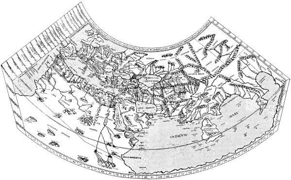 It is again beyond the scope of the present summary of the development of geographical knowledge among European peoples to attempt to give any detailed history of exploration; it is only possible to deal with the salient episodes, and these mainly in so far as they have influenced man’s general conception of the earth. Nevertheless, ages before the existence of any documentary evidence of its development geographical knowledge must have advanced far in other lands. America was “discovered” probably thousands of years before Columbus stumbled against the New World, or even the Norsemen had set foot in “Vineland”; it had time, before the Spaniards swarmed over it, to become the seat of civilizations whose origin is far beyond knowledge. It is worth noticing for our3 particular purpose that the European conquerors found evidence of highly developed geographical methods both in Central America and in Peru; the native maps were intelligible to them, and the Peruvian Incas had even evolved the idea of relief maps. China, again, a great power in early ages, possessed knowledge of much of central Asia; India was the seat of powerful States and of a certain civilization; Babylonia and Egypt were working out their destinies, and had their own conceptions of the earth and the universe, long before the starting-point of the detailed investigation within our present view.