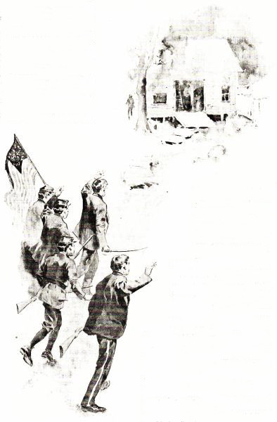 Through the orchard ran a long board walk, or so it appeared to the boys, at least. They skirted through the underbrush, seeking a place where a brook entered the Hope property, knowing that there they could find out something by closer observation. As they crossed a little path, a man stepped from behind a tree directly in front of them. So intent had been the boys on the idea that they were Spanish spies, that they had been communicating with one another in most unintelligible gibberish, and their first idea was that they must have betrayed themselves. But the man, who was dressed in a very citified fashion, appeared to be rather glad to see them.
