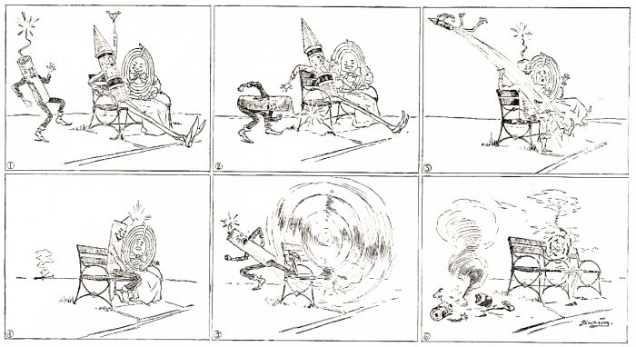 The only way to prove whether this story is true or not is to find the Professor (who could tell you all about it) and the Quartermaster (who claims to have been an eyewitness), and ask them; or to believe the tale that Billy Schreiber, Jun., and his cousin, Gibson Peters, II., tell, without any proof at all. But the two young gentlemen say they really and truly had this adventure, and that it honestly happened on the Fourth of July.