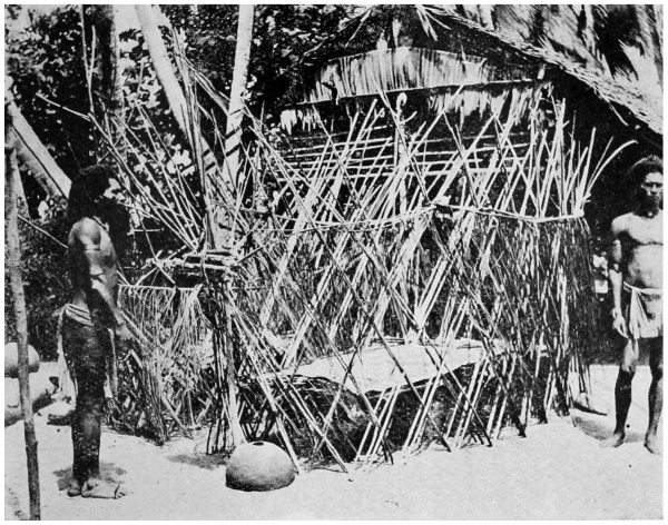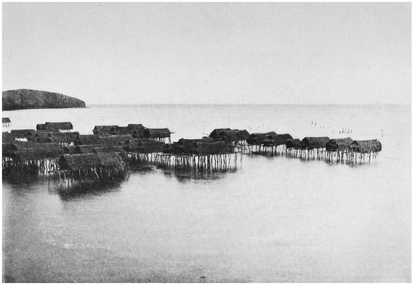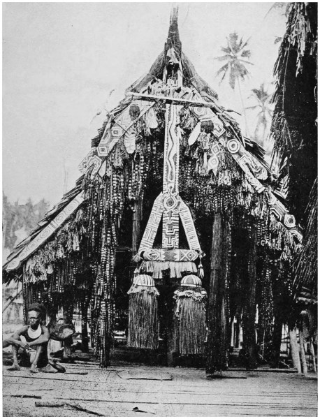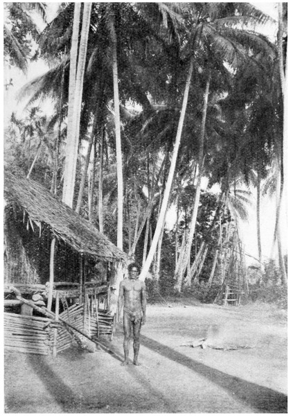 Dinner Island, or as I shall from now on term it, Samarai, is an island of about fifty acres. The hill, which forms the centre of the island, rises from what was then a malodorous swamp, surrounded by a strip of coral beach. The whole island was a gazetted penal district, and the town consisted of the Residency, a fine roomy bungalow built by the Imperial Government for the then Commissioner, General Sir Peter Scratchley—the first of New Guinea officials to be claimed by malaria—and now the headquarters of the Resident Magistrate for the Eastern Division; a small three-roomed building of native grass and round poles dubbed the Subcollector’s house; a gaol of native material, the roof of which served as a bond store for dutiable goods, and a cemetery: the three latter appeared to be well filled. There was also a small single-roomed galvanized iron building which served as a Custom’s house; in it was employed a clerk, unpaid; he was an affable gentleman of mixed French and Greek parentage, and was at the time awaiting his trial for murder. Two small stores, the one owned by Burns, Philp and Co., of Sydney, and the other by Mr. William Whitten, now the Honble. William Whitten, M.L.C., completed the main buildings.