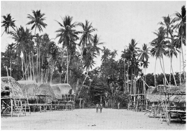 All Samarai was planted with cocoanut palms, the dodging of6 falling nuts from which, in windy weather, served to keep the inhabitants spry. Pyjamas were the almost universal wear, varied in the case of some traders by a strip of turkey-red twill, worn petticoat fashion, and a cotton vest.