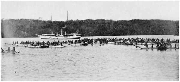 Samarai boasted neither wharf nor jetty; our cargo was therefore simply shot over the side into the multitude of canoes and thence ferried to the beach, with such assistance as the ship’s boats could afford.