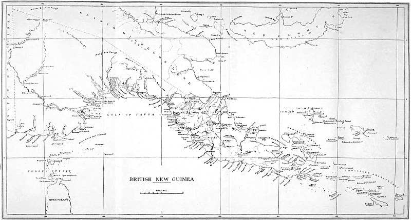 I have abstained from putting into the mouths of natives the ridiculous jargon or “pidgin English” in which they are popularly supposed to converse. The old style of New Guinea officer spoke Motuan to his men, and I have, where required, merely given a free translation from that language into English. Inviii recent books about New Guinea, written by men of whom I never heard whilst there, I have noticed sentences in pidgin English, supposed to have been spoken by natives, which I would defy any European or native in New Guinea, in my time, either to make sense of or interpret.