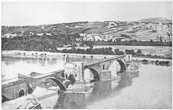 5. The old bridge on the Rhône at Avignon, built by the friars pontiff in the twelfth century, as it now stands, the four arches and the chapel • 33