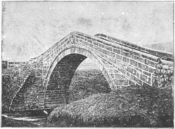 14. The one-arched bridge on the Esk, near Danby Castle, Yorkshire, built during the fourteenth century by Neville, Lord Latimer, the arms of whom are still to be seen at the top of the bridge. From a photograph obtained through the kindness of the Rev. J. C. Atkinson, of Danby Parsonage, York • 77