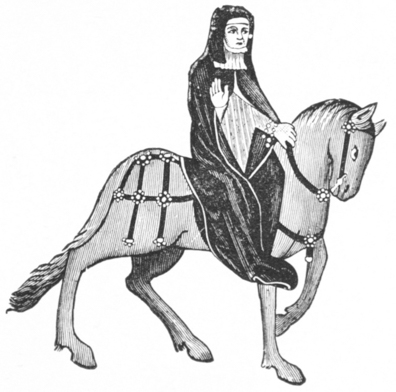 21–22. Ladies on horseback. Two drawings illustrative of both ways of riding; sitting sideways: Chaucer’s prioresse, and riding astride: Chaucer’s Wife of Bath. From the Ellesmere MS. • 105
