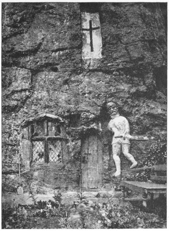 29. The hermitage chapel of St. Robert, hewn out of the limestone, at Knaresborough, Yorkshire, thirteenth century; the figure of the knight, of a much later date. Similar rock habitations are innumerable in France in the valley of the Loire and of certain of its affluents, especially in Vendomois (at Troo for example); some are still occupied; several were, in the middle ages, the place of abode of hermits and still bear signs thereof • 139