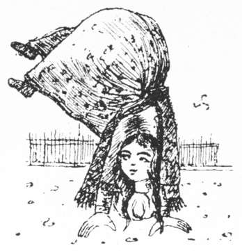 18. Ladies travelling in their carriage with their dogs and pet animals, one of which is a squirrel. One of the followers travelling on horseback, to be more at his ease and to be able to defy the wind, has covered his head with his hood, and carries his tall hat hanging to his girdle. From the Louterell psalter. See preceeding No. • 97