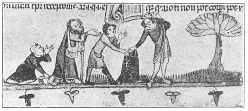 31. Escaped prisoner flying to sanctuary. From the MS. 10 E. IV., fol. 206 b, in the British Museum, fourteenth century • 149
