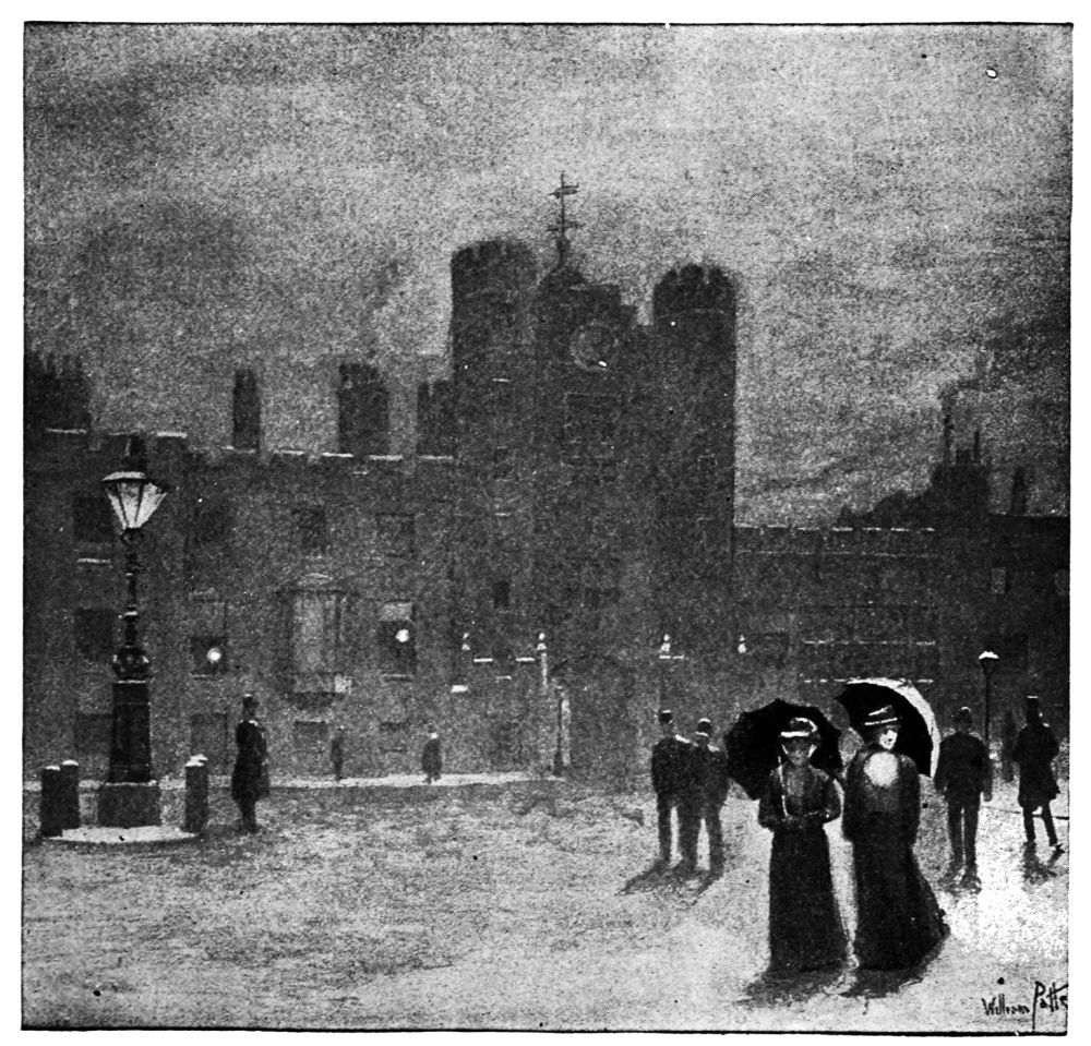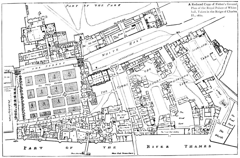 We may consider that for five hundred years the Court and the Church, the Palace and the Abbey, divided between them the whole of Thorney Island. Until, therefore, the swamps were drained, there was no place—or a very narrow place—for houses and inhabitants on the south and west. Toward the north, between New Palace Yard and Charing Cross, houses began and grew, but quite slowly. Even so recently as the year 1755 the parish of St. Margaret’s had extended westward no farther than to include the streets called Pye Street, Orchard Street, Tothill Street, and Petty France, now York Street. King Street was the main street connecting Westminster with London by way of Charing Cross; and east and west of King Street, at the Westminster or southern end, was a network of narrow streets, courts, and slums, a few of which still exist to show what Westminster of the Tudors and the Stuarts used to be.{4}