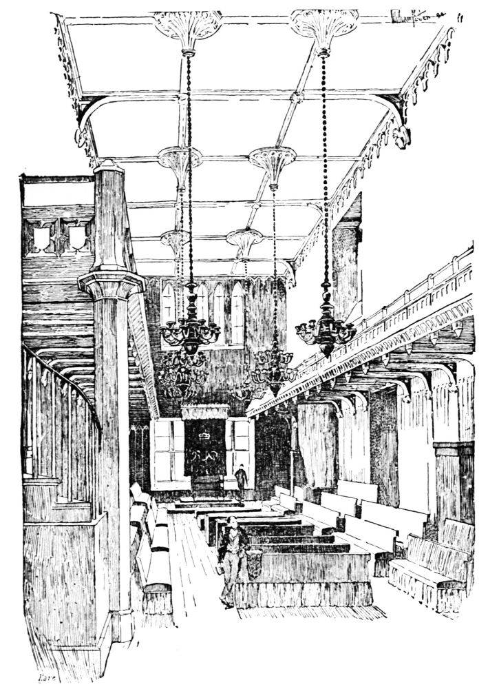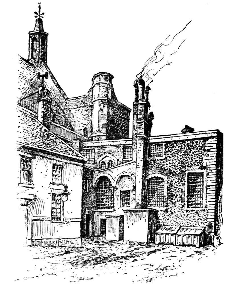 The kings of England held their Court in the Old Palace, the Palace of Westminster, for five hundred years. Of all the buildings which formed that Palace, there remain at this day nothing but a Hall, greatly altered, a Crypt, and a single Tower. Sixty years ago, before the last of the many fires which attacked the Palace, there was left, much disfigured, a single group of buildings which formerly contained the heart of the Palace, the king’s House. This group, however, was so much shut in and surrounded with modern houses, courts, offices, taverns, and stores, that the ancient parts could be with difficulty detached. Fortunately this task was accomplished before the fire: one can therefore restore one part, at least, of the Palace.