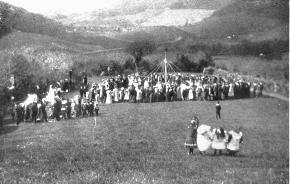 A child was born here on 20 November 1902, and had a rupture. Some while afterwards I asked the father how the child was getting on, and the answer was—“Oh, it be a sight better since us put’n through a tree.” And I found that they had carried out the ancient rite. The father had split an ash-tree on the hill behind this house, and had wedged the hole open with two chunks of oak. Then he and his wife took the child up there at day-break; and, as the sun rose, they passed it three times through the tree, from east to west. The mother then took the child home, and the father pulled out the chunks of oak, and bandaged up the tree. As the tree-trunk healed, so would the rupture heal also.