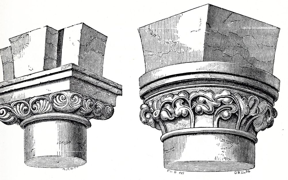 Gundulph built the keep of the castle in London called the White Tower, and the cathedral of Rochester, of which we have a part of the crypt, and some remains of the wall of the nave and north transept. The whole of this work is extremely rude; the construction is usually rubble. When of ashlar, the joints are very wide, and the capitals of the shafts clumsy.
