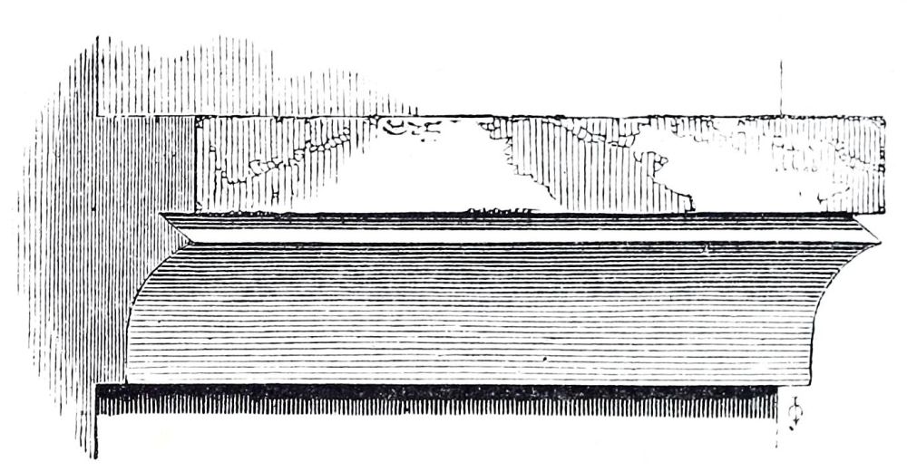 on a cart, to the cathedral of Winchester, the blood dripping from it all the way. Here it was committed to the ground within the tower, attended by many of the nobility, but lamented by few. The next year [1097] the tower fell; though I forbear to mention the different opinions on this subject, lest I should seem to assent too readily to unsupported trifles; more especially that the building might have fallen through imperfect construction, even though he had never been buried there.” That this was really the case, the building itself affords us abundant evidence, and proves that even the Normans at this period were still bad masons, and very imperfectly acquainted with the principles of construction. The tower which was rebuilt soon after the fall is still standing, and the enormous masses of masonry which were piled together to support it, and prevent it from falling again, shew such an amazing waste of labour and material as clearly to prove that it was the work of very unskilful builders.
