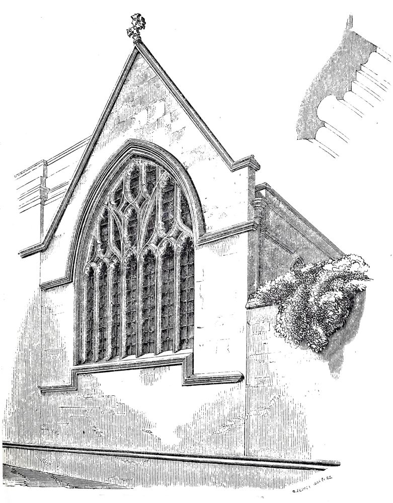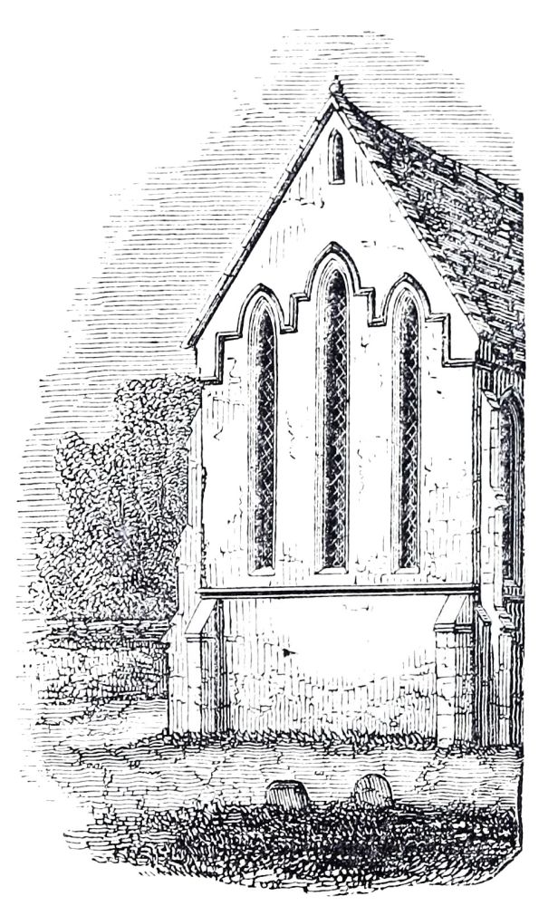 The apse is usually an early feature; in this instance the projection of the buttresses and the ornamental string round it shew it to be later. The side-window is an insertion in the Early English style.