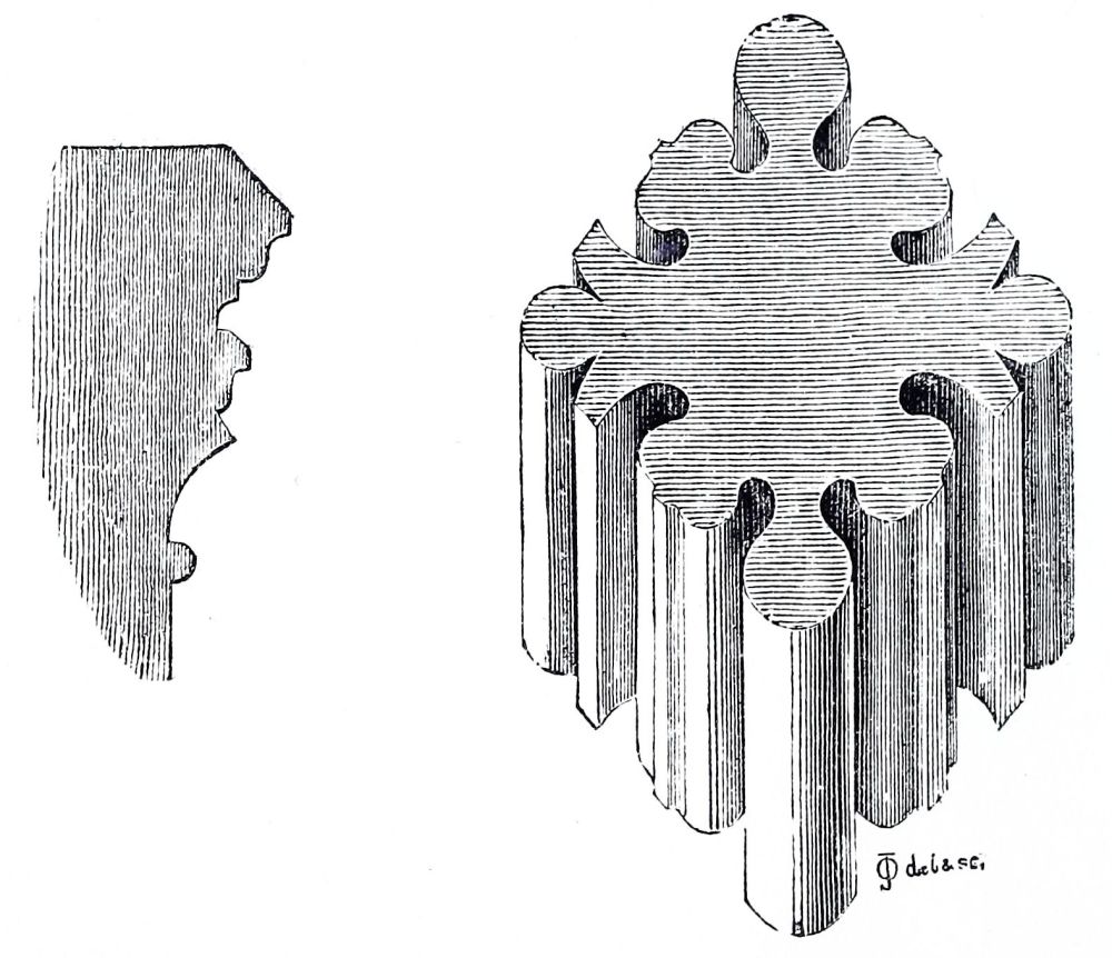 This example is valuable to us also in another respect: the two transepts were only partially injured by the fall of the tower; the greater part of both of them belongs to the original work; the junction of the old work and the new can be distinctly traced; and here we begin to find a difference of character in the new work, and a mark by which we can{27}