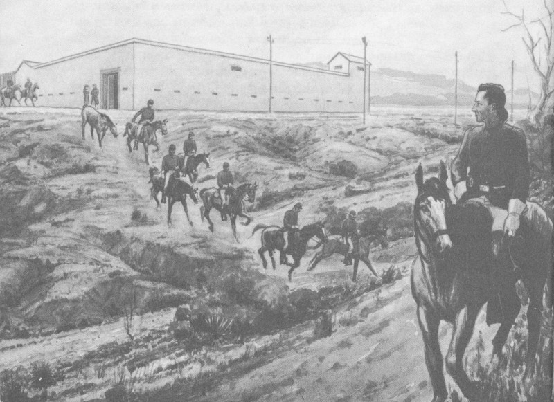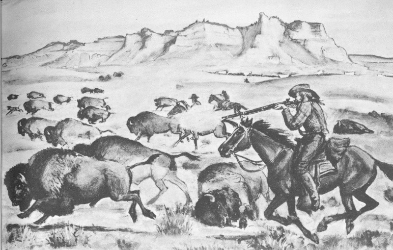 Returning Astorians at Scotts Bluff Christmas Day, 1812. Original sketch in Oregon Trail Museum.