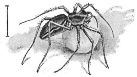 Die weiblichen Springspinnen tragen ihre Eier in einem runden Sacke bei sich. Peter fing eine von ihnen, als sie mit diesem weißen Ball unter ihrem Körper dahinlief. Er nahm den Ball fort und legte ihn auf den Boden. Als er die Spinne los ließ, lief sie herzu und ergriff ihn. Er nahm den Ball dreimal fort. Jedesmal ergriff sie ihn wieder und lief zuletzt damit fort, ehe wir sie von neuem fassen konnten.