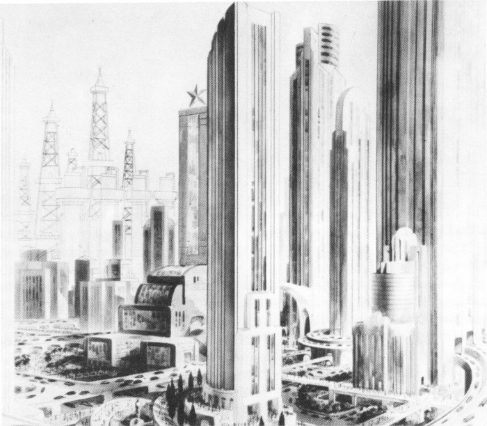 This, apparently painted in the 1920s, is an unknown artist’s conception of Houston in 1980.