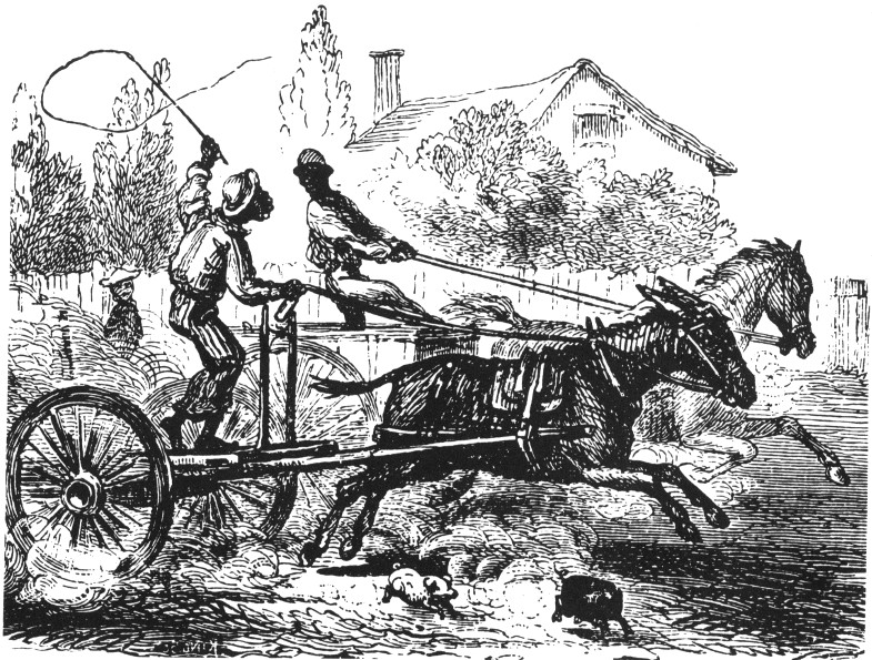 Two Negroes racing their drays.