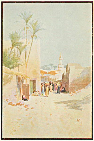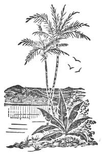 The slight shadow of a frail thorn palm moved in its slow daily course along the whole length of the[12] heated wall; the palm was the only tree in the quarter, where no green thing refreshed the eye. On its yellowed fronds flights of those tiny blue or pink birds, called in France bengalis, would often come and perch. But all around lay sand, sand, nothing but sand. Never a tuft of moss, never a fresh blade of grass grew on the soil, parched by the burning breath of the Sahara.