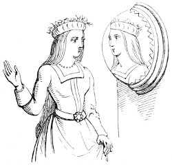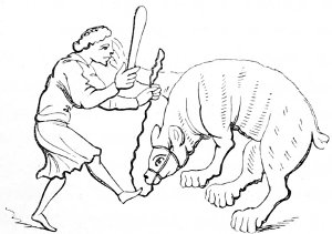 Grendel had a mother (it was the primitive form of the legend of the devil and his dam), and this second night she came unexpectedly to avenge her son, and slew one of Hrothgar’s favourite counsellors and nobles, who must therefore have also slept in the hall. Beowulf and his warriors next day went in search of this new marauder, and succeeded in destroying her, after which exploit they returned to their own home laden with rich presents.