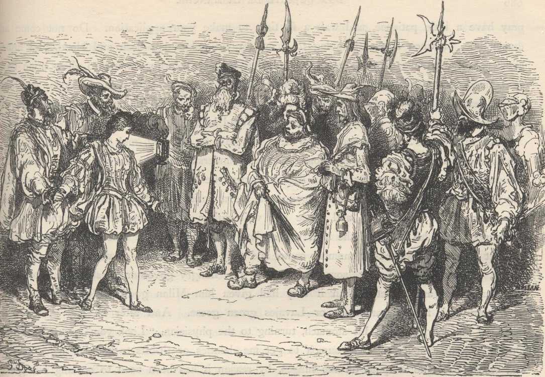 “I don’t know whether I am good,” said Don Quixote, “but I can safely say I am not ‘the Bad;’ and to prove it, let me tell you, Señor Don Alvaro Tarfe, I have never in my life been in Saragossa; so far from that, when it was told me that this imaginary Don Quixote had been present at the jousts in that city, I declined to enter it, in order to drag his falsehood before the face of the world; and so I went on straight to Barcelona, the treasure-house of courtesy, haven of strangers, asylum of the poor, home of the valiant, champion of the wronged, pleasant exchange of firm friendships, and city unrivalled in site and beauty. And though the adventures that befell me there are not by any means matters of enjoyment, but rather of regret, I do not regret them, simply because I have seen it. In a word, Señor Don Alvaro Tarfe, I am Don Quixote of La Mancha, the one that fame speaks of, and not the unlucky one that has attempted to usurp my name and deck himself out in my ideas. I entreat your worship by your devoir as a gentleman to be so good as to make a declaration before the alcalde of this village that you never in all your life saw me until now, and that neither am I the Don Quixote in print in the Second Part, nor this Sancho Panza, my squire, the one your worship knew.”