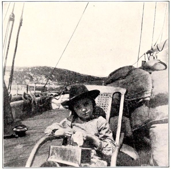 My kitty is very wild and will not come to me, though I feed her milk and bread and try my best to make friends with her. The Captain is very jolly, and helps me have fun. He has had a nice swing put up for me on deck, and when our ship does not roll too much I have fine times there.