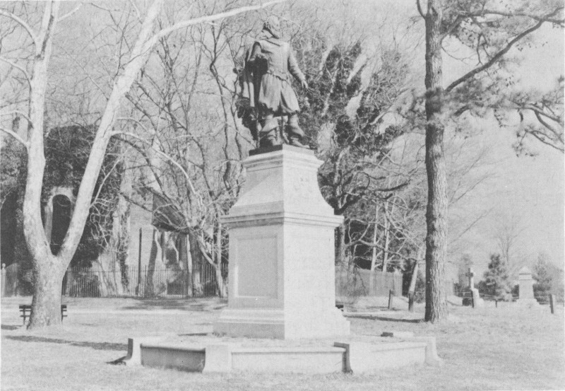 Statue of Capt. John Smith, by William Couper. The Old Church Tower is in the background.
