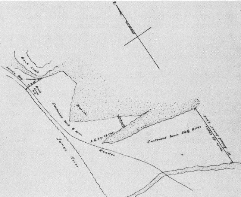In May, Sir Thomas Dale, on military leave from his post in the Low Countries, arrived as deputy governor of Virginia. He proceeded to give form and substance to the martial law which had been evoked by his predecessors. It led to rather complete regimentation, and he was severely criticized for it later, particularly by those hostile to his administration. He began by posting proclamations “for the publique view” at Jamestown. Later, he thoroughly inspected suitable settlement sites and surveyed conditions generally. He wrote, on May 25, 1611, that on arrival at Jamestown he found “... no corn sett, some few seeds put into a private garden or Two; but the cattle, cows, goats, swine, Poultry &c to be well and carefully on all hands preserved and all in good plight and likeing.” To get things in order at the seat of government, one party was designated to repair the church, another to work on the stable, another to build a wharf. When things were reasonably well in hand at Jamestown, he made plans to push the decision to open a new settlement above Jamestown which would become the real center of the colony. The reasons for such a removal of the seat of government are well known—not sufficient high land, poor drinking water, too much marsh, and a location not far enough upstream to be out of reach of the Spanish.